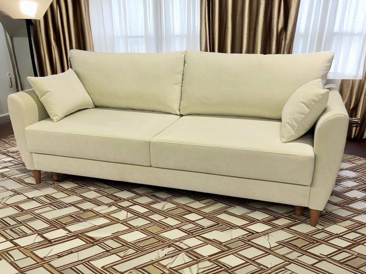 Удобные подлокотники и мягкая спинка этого дивана помогут расслабиться и отдохнуть, а деревянные ножки создают визуальное ощущение легкости. Удобное в меру мягкое сидение состоит из пружинной змейки и резинотканевых ремней. Широкие набивные подушки, внутри которых синтешарики, позволяют с комфортом отдохнуть, а необычная скругленная форма подлокотников привносит гармонию в интерьер комнаты. Диван раскладывается быстро и легко благодаря шагающему механизму «пантограф». Плюсом этой модели также станет вместительный бельевой отсек. Основа каркаса - брус хвойных пород и фанерный брус в сочетании с МДФ.