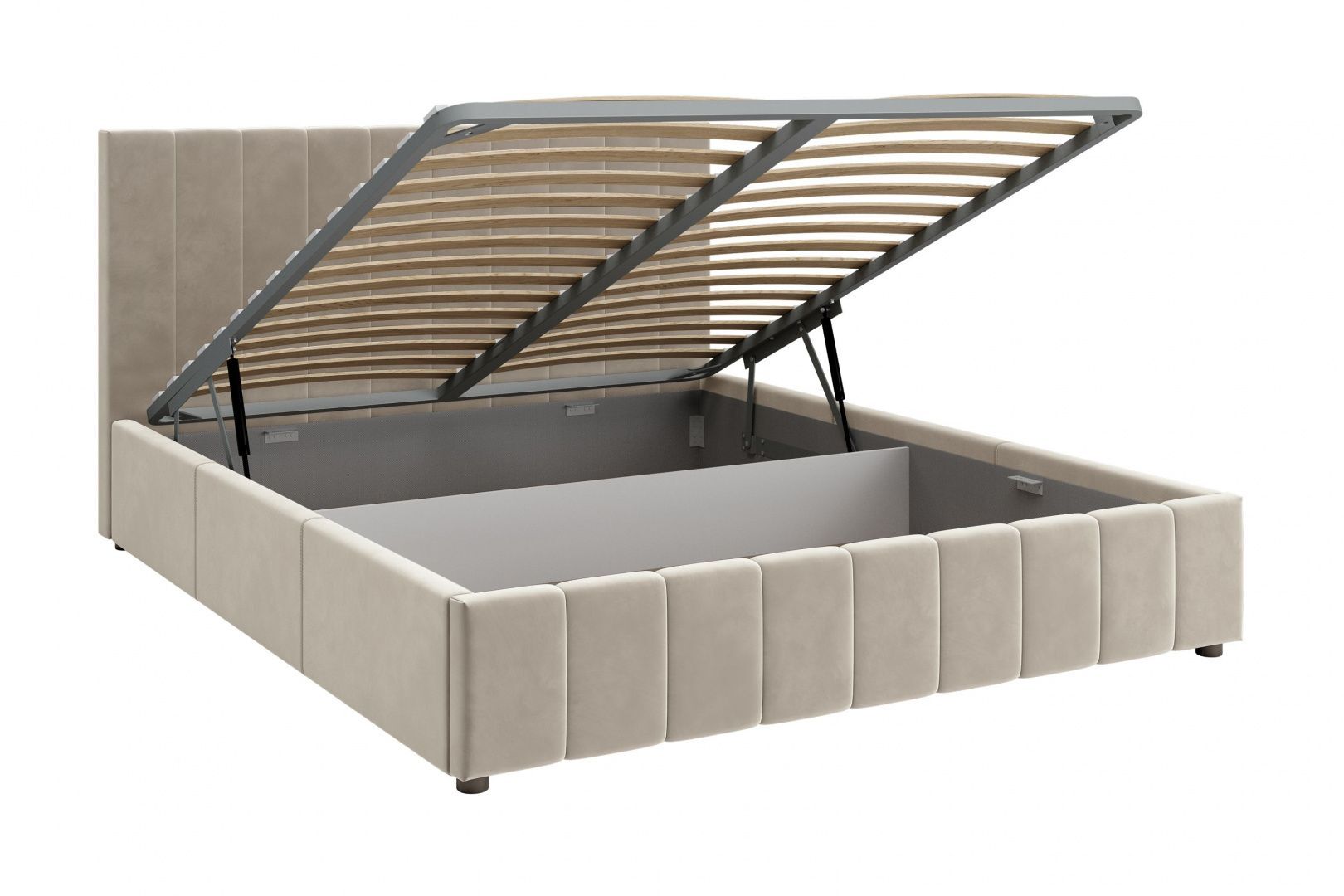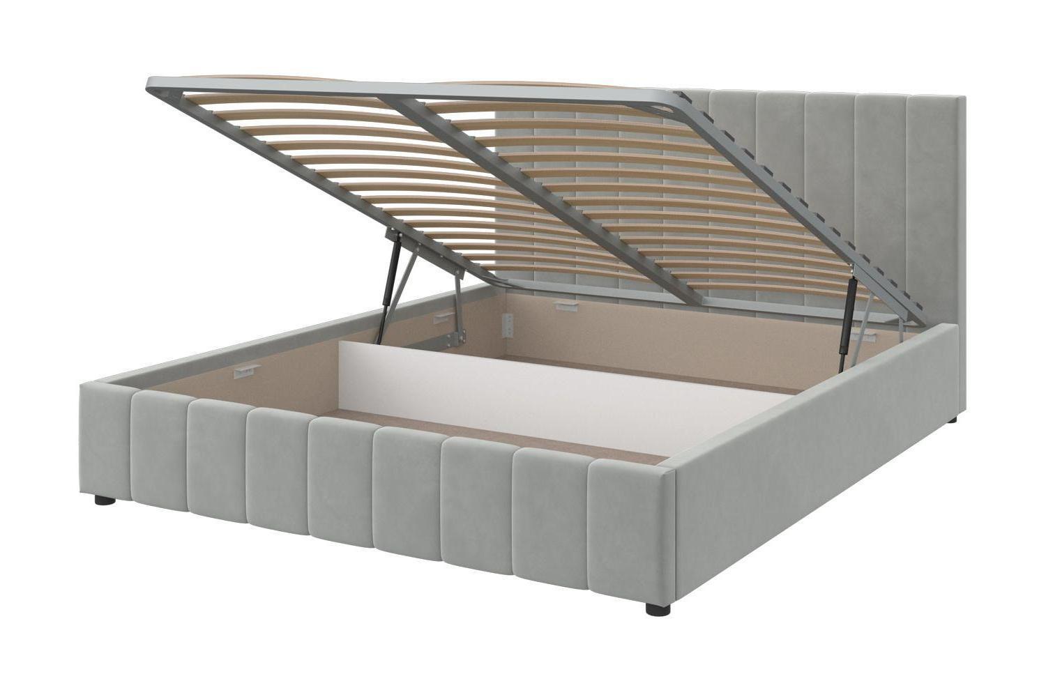 Кровать с мягким изголовьем Нельсон украшена стёжкографией в виде геометрического узора на спинке и изножье. Отделка придает декору строгости и лаконичности, а мягкая обивка - комфорта и роскоши. Интерьерная кровать Нельсон комплектуется металлокаркасом и оснащена подъемным механизмом с газовым амортизатором (газлифтом). Мягкие кровати БРАВОмебель имеют надежный каркас из МДФ, фанеры и ЛДСП. В качестве наполнителя используются различные материалы, такие как холкон, поролон и периотек, которые обеспечивают мягкость, комфорт и долговечность изделия. Внешний слой обивки кровати выполнен из износостойкой качественной ткани.