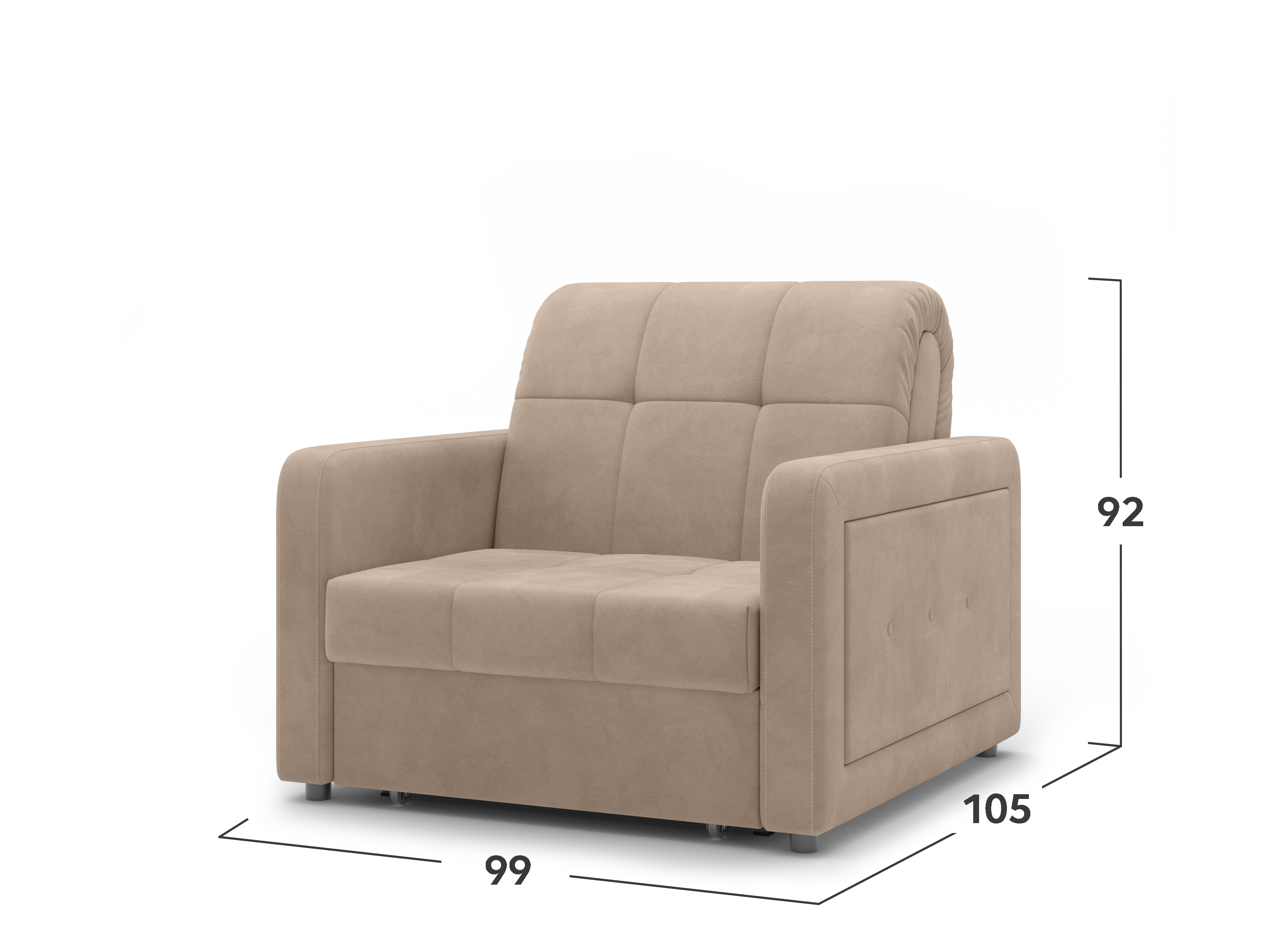 Кресло-кровать «Порту» сочетает в себе элегантный дизайн и многофункциональность. Эта модель идеально подходит для ограниченных пространств, легко преобразуясь из стильного кресла в удобное спальное место.