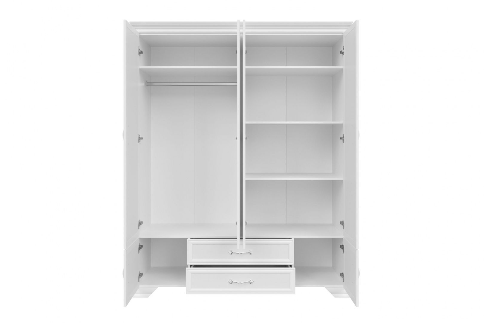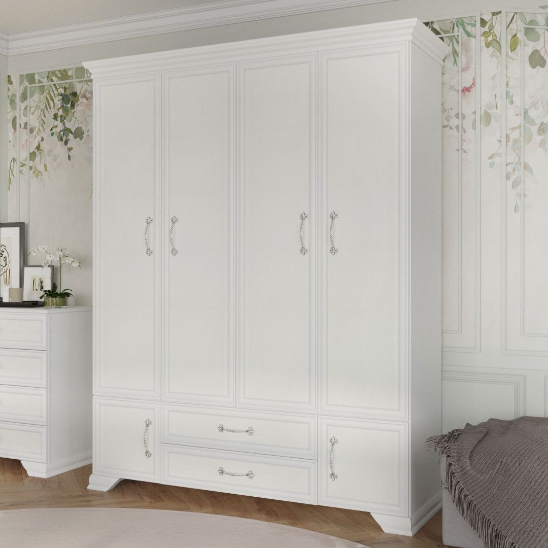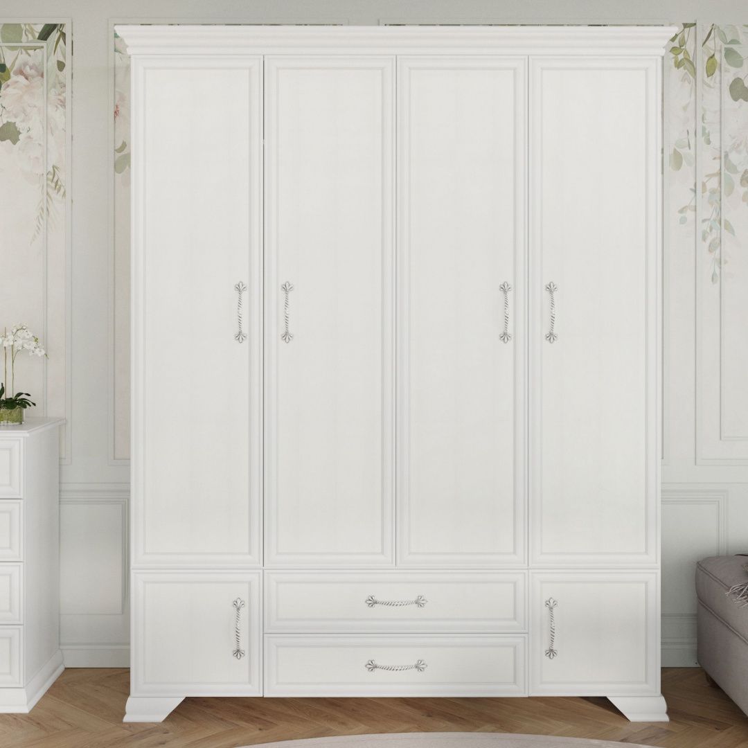 Белоснежность этого гарнитура - не холодная и строгая, а мягкая и элегантная. Как раз то, что нужно, чтобы сделать спальню светлой уютной, комфортной. Именно в такой спальне снятся прекрасные сны.